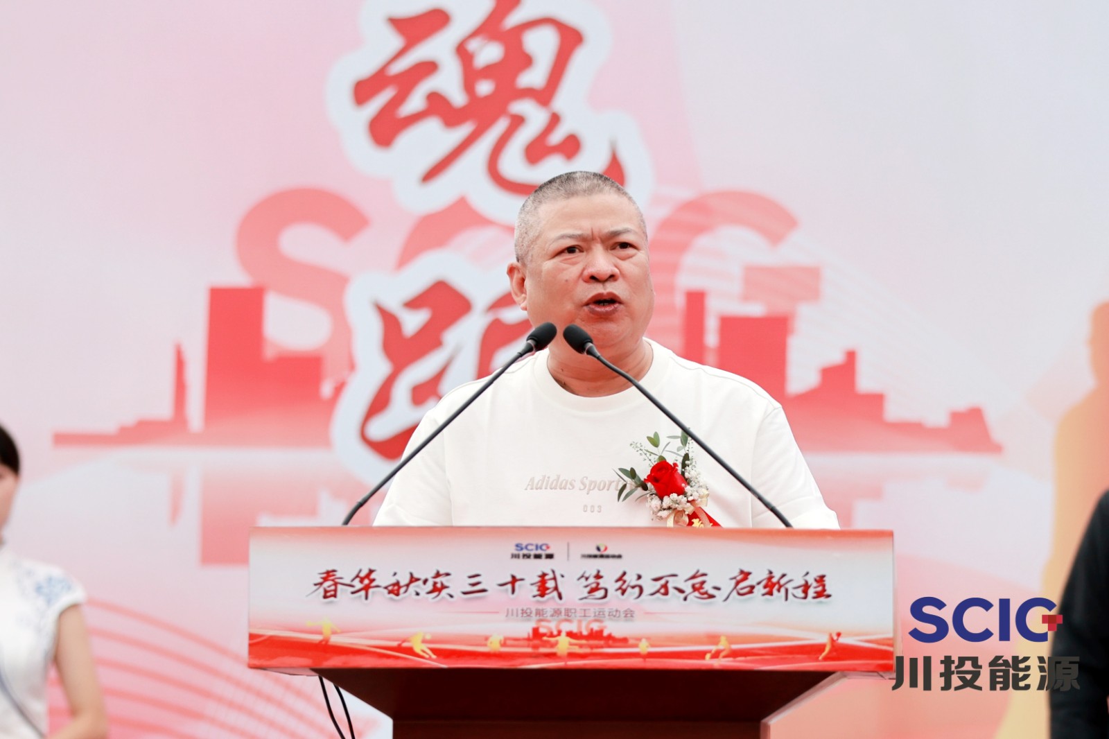 楊洪在致辭中代表川投能源全體職工,向出席開幕式的各位領導、來賓表示誠摯歡迎,向全體運動員、裁判員和工作人員致以親切問候,向資陽口院全體師生表示衷心感謝。他說,本次職工運動會是川投能源深入貫徹落實習近平總書記關于加快建設體育強國重要指示和黨的二十大精神,豐富職工精神文化生活,促進職工全面發(fā)展的重要舉措?;厥咨鲜腥?,川投能源人始終堅定聽黨話、感黨恩、跟黨走,全力以赴拼經(jīng)濟、搞建設、謀發(fā)展,華麗蝶變成為四川省參控股裝機規(guī)模最大的能源上市公司。希望全體運動健兒弘揚中華體育精神和體育道德風尚,賽出風格、賽出水平、賽出成績。希望川投能源全體職工和參賽人員以本次運動會為契機,進一步激發(fā)團結奮斗、銳意進取、爭創(chuàng)一流的工作精神,并將之轉(zhuǎn)化為干事創(chuàng)業(yè)、奮勇爭先的強大動力,認真工作、勤勉履職、健康生活,牢記領袖殷殷囑托,奮進新征程建功新時代。