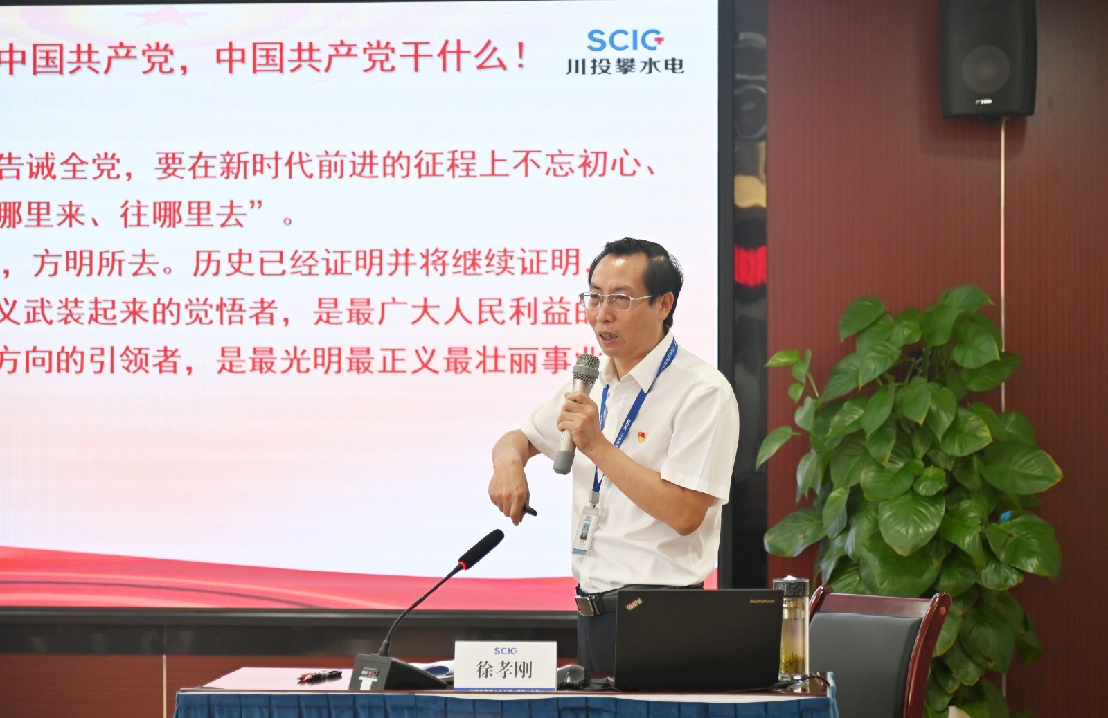 按照川投集團(tuán)黨委和川投能源黨委總體部署,為深入學(xué)習(xí)貫徹習(xí)近平總書記來川視察重要指示精神和四川省第十二次黨代會精神,傳達(dá)學(xué)習(xí)川投集團(tuán)和川投能源慶?!捌咭弧北碚么髸?,7月1日下午,攀水電公司組織召開慶祝建黨101周年先進(jìn)表彰大會暨“書記講堂”,由川投能源副總經(jīng)理、攀水電公司黨總支書記、董事長、攀新能源公司董事長徐孝剛講授專題黨課,宣傳習(xí)近平總書記來川視察重要指示精神和省第十二次黨代會精神。會議由黨總支委員、董事會秘書、工會主席鄧勇主持,攀水電公司全體黨員、非黨干部,參建單位負(fù)責(zé)人、聯(lián)建支部支委及“兩優(yōu)一先”表彰對象共計(jì)45人參會。
