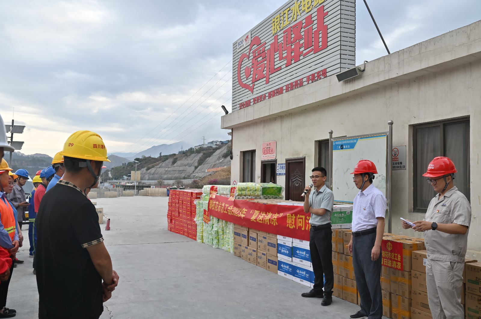 6月6日上午,攀枝花市總工會(huì)張平副主席一行來(lái)到銀江水電站“愛(ài)心驛站”,慰問(wèn)奮戰(zhàn)在極端高溫下的一線作業(yè)人員和管理人員。攀水電公司黨總支書(shū)記、董事長(zhǎng)徐孝剛,參建單位代表及公司志愿者服務(wù)隊(duì)參加慰問(wèn),公司黨總支副書(shū)記、董事會(huì)秘書(shū)、工會(huì)主席鄧勇主持活動(dòng)。