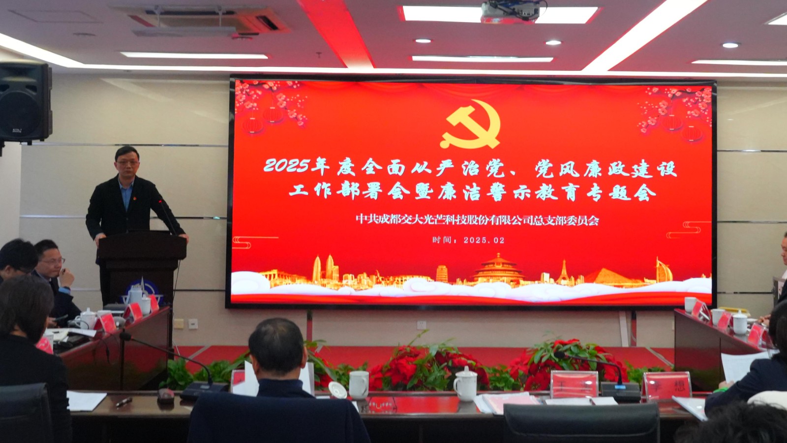 為深入學(xué)習(xí)貫徹二十屆中紀(jì)委四次全會(huì)精神,深入推進(jìn)公司黨風(fēng)廉政建設(shè)和反腐敗工作,2月21日,交大光芒黨總支召開2025年度全面從嚴(yán)治黨、黨風(fēng)廉政建設(shè)工作部署會(huì)暨廉潔警示教育大會(huì),黨總支書記、常務(wù)副總經(jīng)理王濤主持會(huì)議,公司領(lǐng)導(dǎo)班子成員、主管及以上管理人員、黨員參加會(huì)議。
