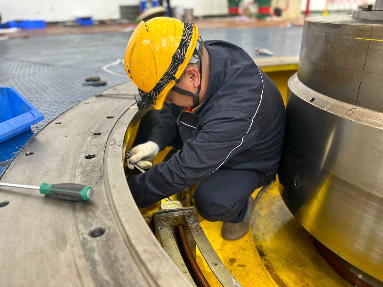 自11月19日檢修工作啟動(dòng)以來,電廠檢修團(tuán)隊(duì)秉持“應(yīng)修必修、修必修好”的核心原則,以“標(biāo)準(zhǔn)化、精細(xì)化”為作業(yè)導(dǎo)向,對2號(hào)水輪發(fā)電機(jī)組及輔助設(shè)備開展全面檢查、清理、試驗(yàn)與缺陷消除工作。檢修過程中,團(tuán)隊(duì)強(qiáng)化作業(yè)前風(fēng)險(xiǎn)分析與預(yù)控,嚴(yán)格執(zhí)行日計(jì)劃管控、“兩票”制度及“三講一落實(shí)”要求,堅(jiān)決杜絕“三違”行為;嚴(yán)格遵循公司標(biāo)準(zhǔn)化檢修規(guī)范,提前編制并細(xì)化執(zhí)行《檢修作業(yè)指導(dǎo)書》,通過三級驗(yàn)收機(jī)制對各工序、各環(huán)節(jié)實(shí)施全流程質(zhì)量管控,確保檢修工作安全、優(yōu)質(zhì)、高效推進(jìn)。